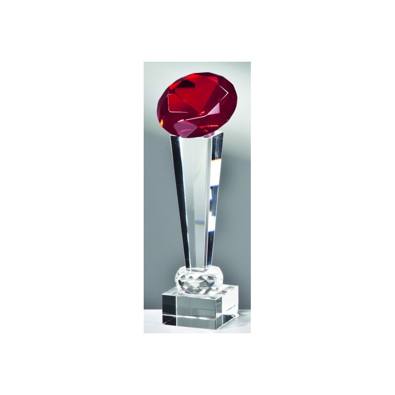 Trophée Noblesse muni d'une colonne entièrement en Verre avec une imitation émeraude Rouge.