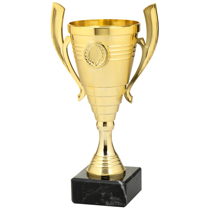Coupe entièrement dorée en bakélite et munie de 2 anses...marbre noir.